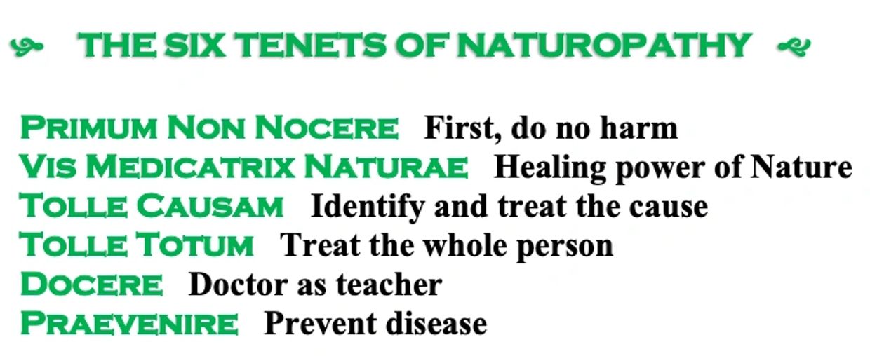 Naturopathic Doctors (NDs) who belong to the American Naturopathic Association stringently follow these traditional guidelines. Some modern naturopaths do not actually believe in the healing power of Nature and have been taught that the body is a machine that needs to be fixed in order to work properly. In adopting this standard allopathic model, these naturopaths began using synthetic drugs, and believe that natural medicines do not work as well.